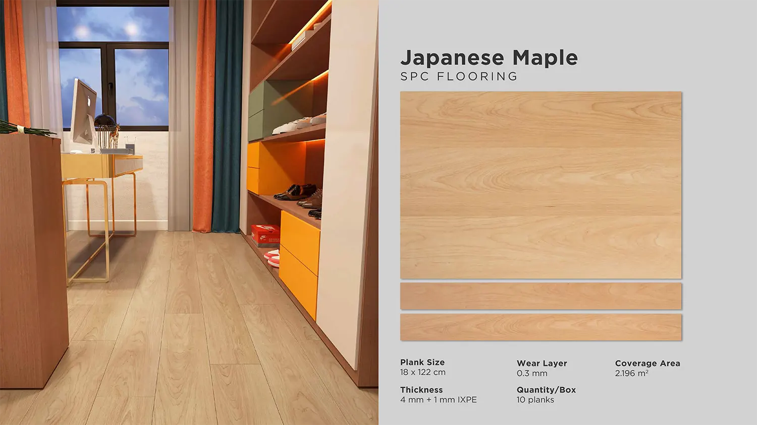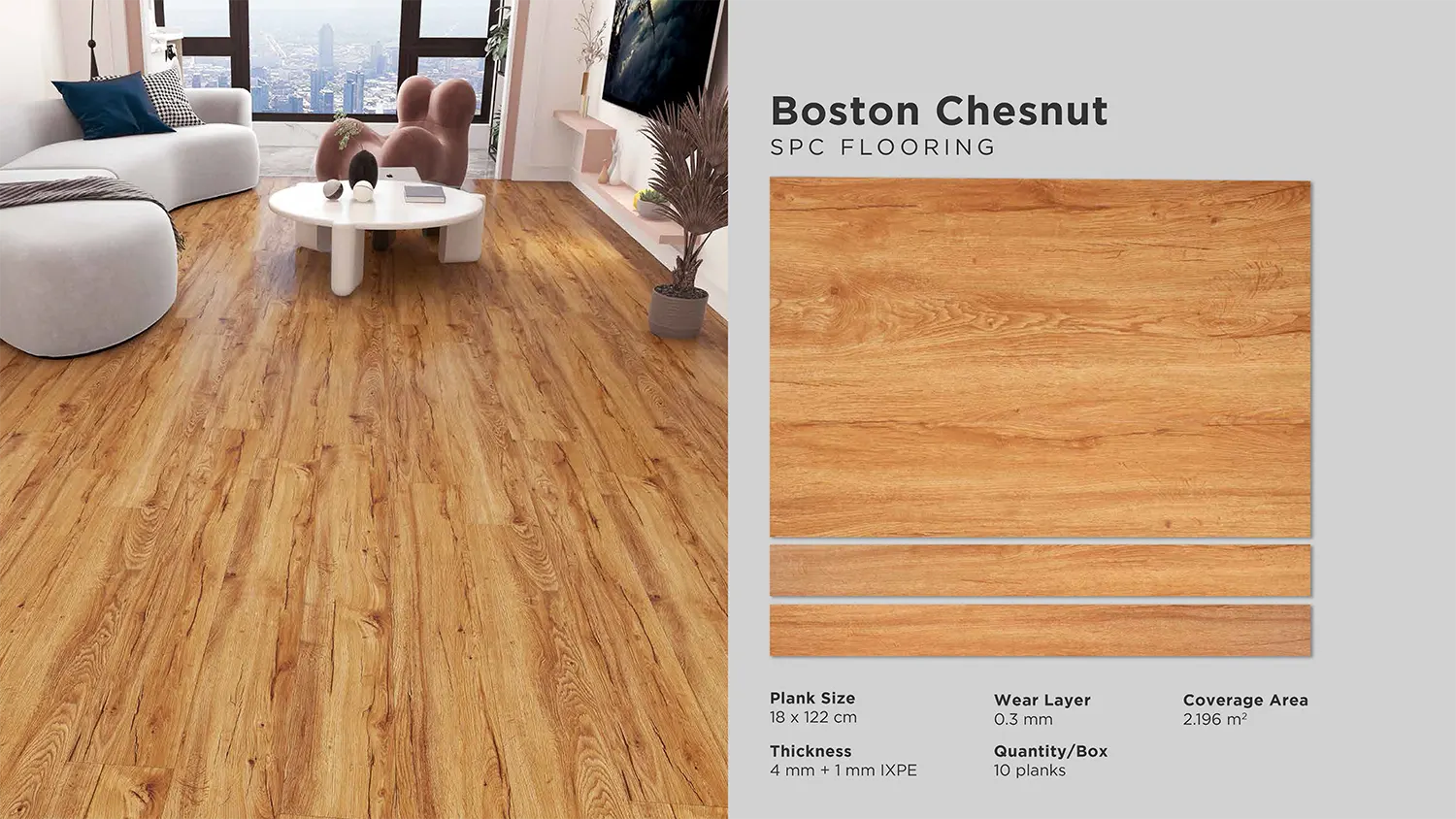 Harga : 488.500 Size Plank : 180 mm x 1220 mm | Wear Layer : 0,3 mm Thickness : 5 mm | 10 Pieces / Box : 2,196 sqm