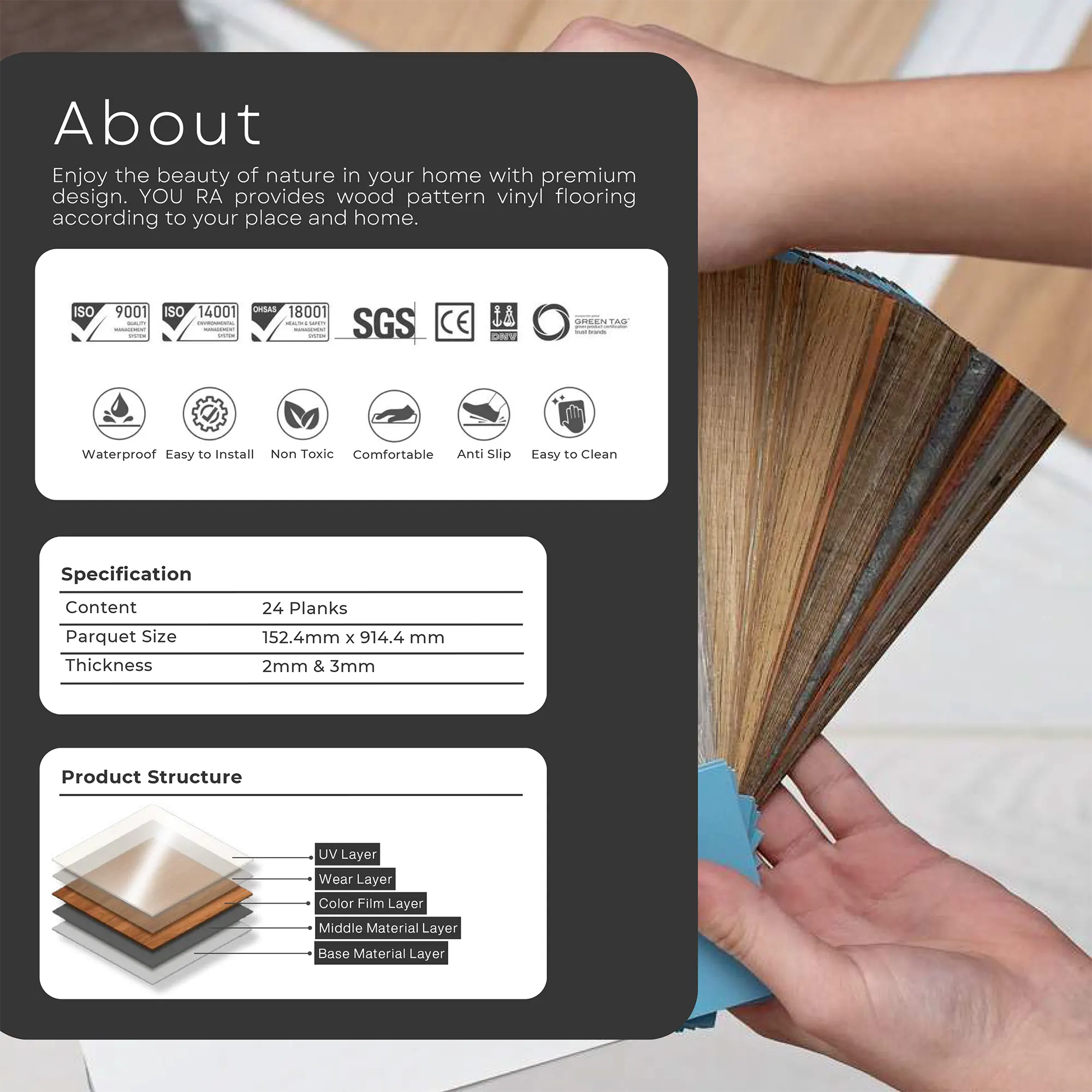 Harga 2mm =( 268.500/box ), ( 83.900/m² ) Harga 3mm =(379.500/box), ( 117.130/m² ) —————— Tebal : 2 & 3 mm | Size : 15 cm x 90 cm | Isi : 24 plank | Volume : 3,24 m²